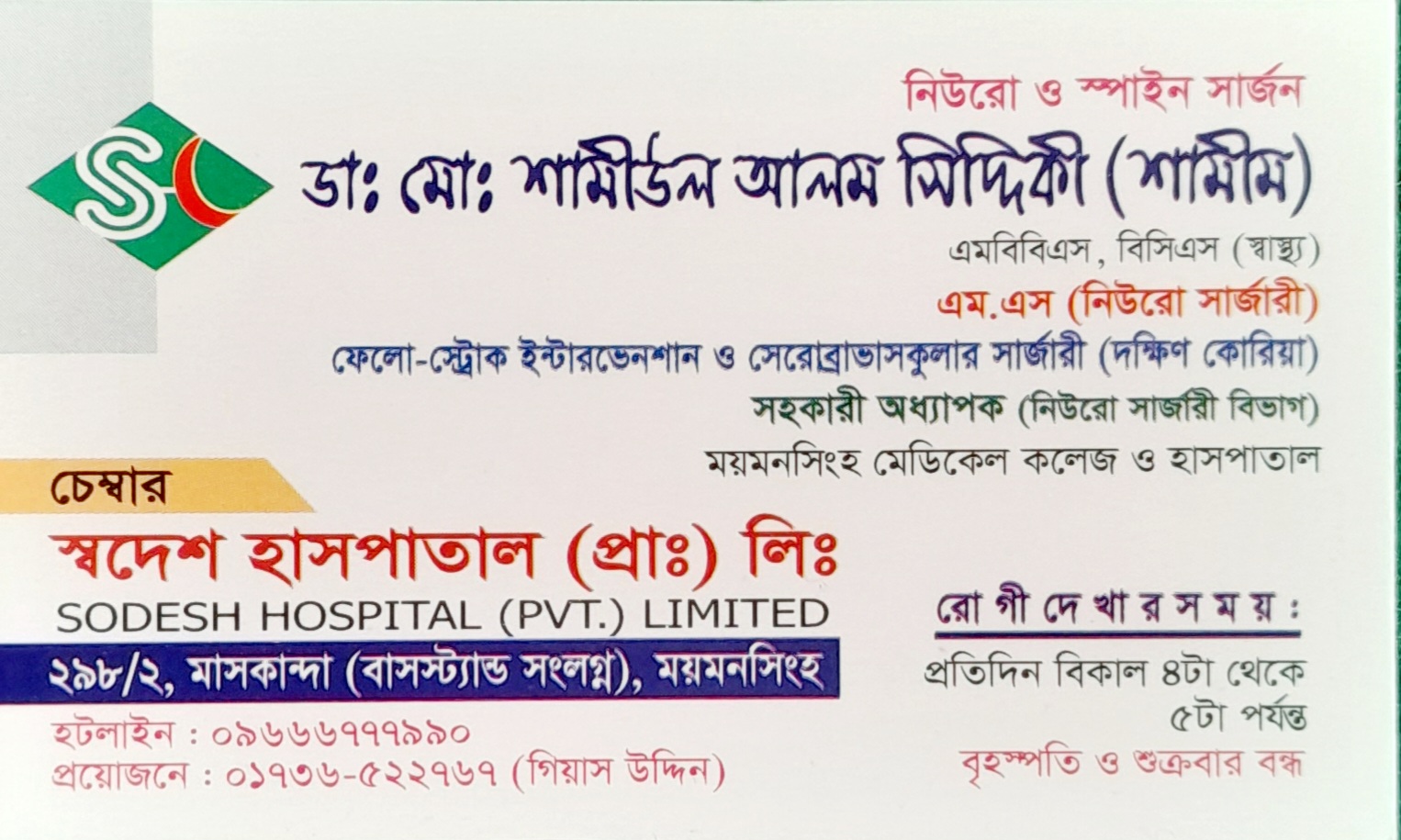 Dr. Md Samiul Alam Siddique Shamim ডাঃ মোঃ শামীউল আলম সিদ্দিকী (শামীম)